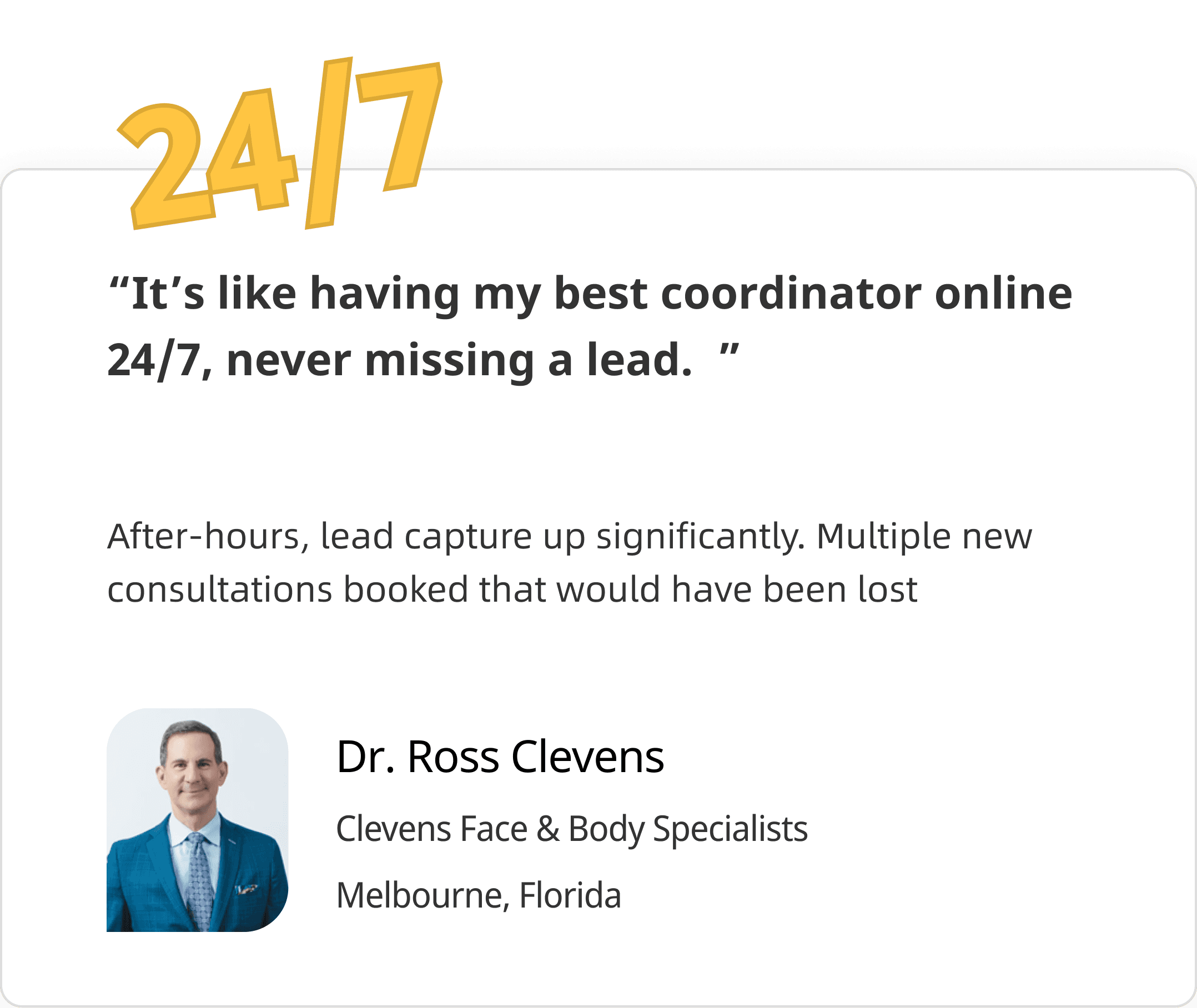 After-hours voice agent converted 15 consults in October alone. Zero coordinator overtime needed.